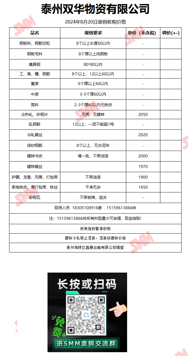 今日双华物资 废钢收购报价已更新,有货的朋友欢迎联系我们!