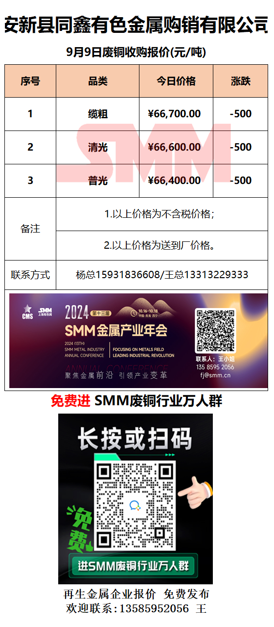 今日安新同鑫 废铜采购报价已更新,有货的朋友欢迎联系我们!