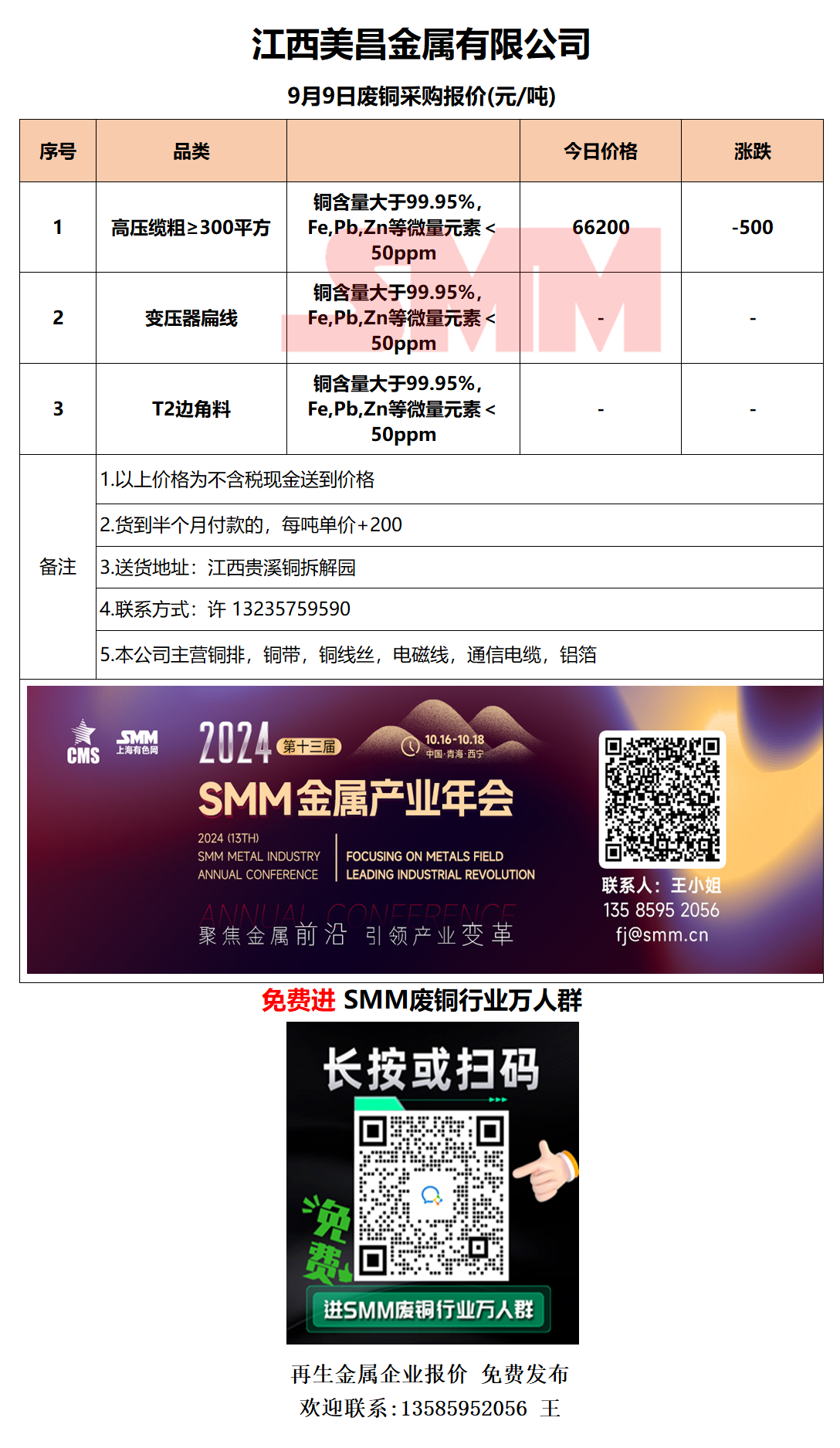 今日江西美昌 废铜采购报价已更新,有货的朋友欢迎联系我们!