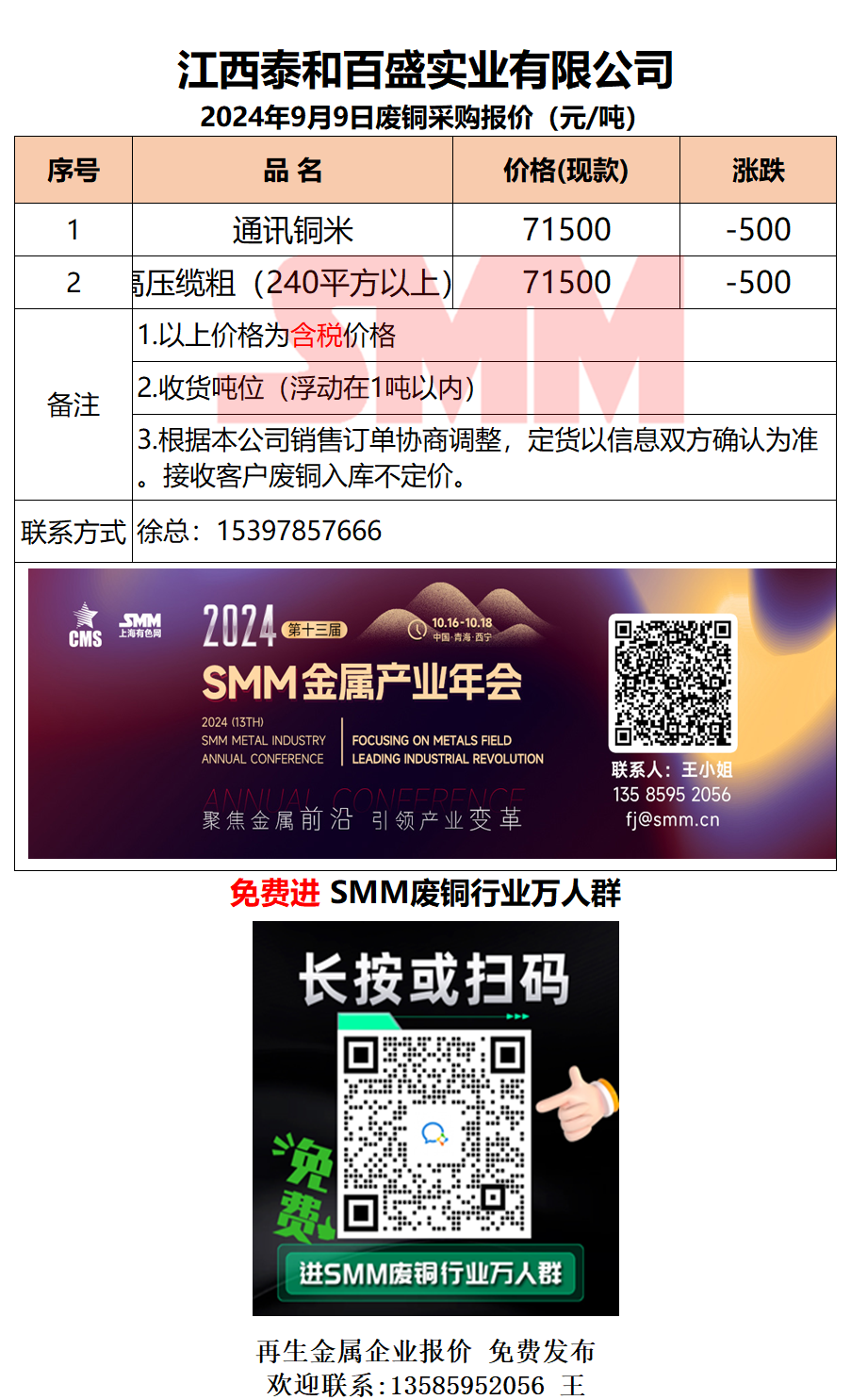 今日江西泰和 废铜采购报价已更新,有货的朋友欢迎联系我们!