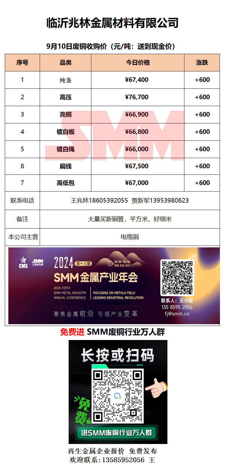 今日临沂兆林金属 废铜采购报价已更新,有货的朋友欢迎联系我们!