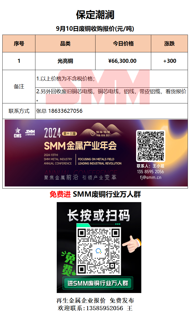 9月10日保定潮澜 废铜采购报价