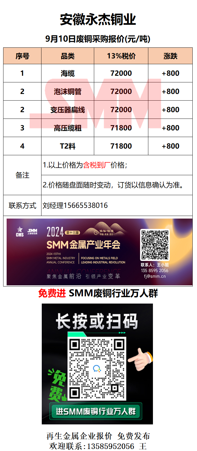 9月10日安徽永杰 废铜采购报价