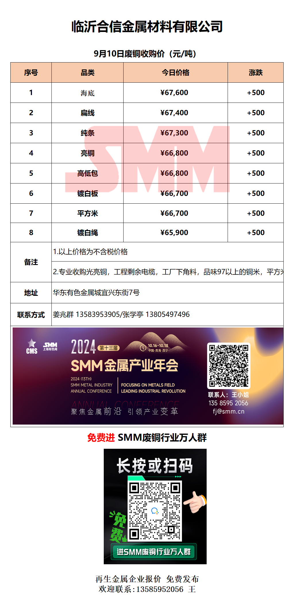 9月10日临沂合信金属 废铜采购报价