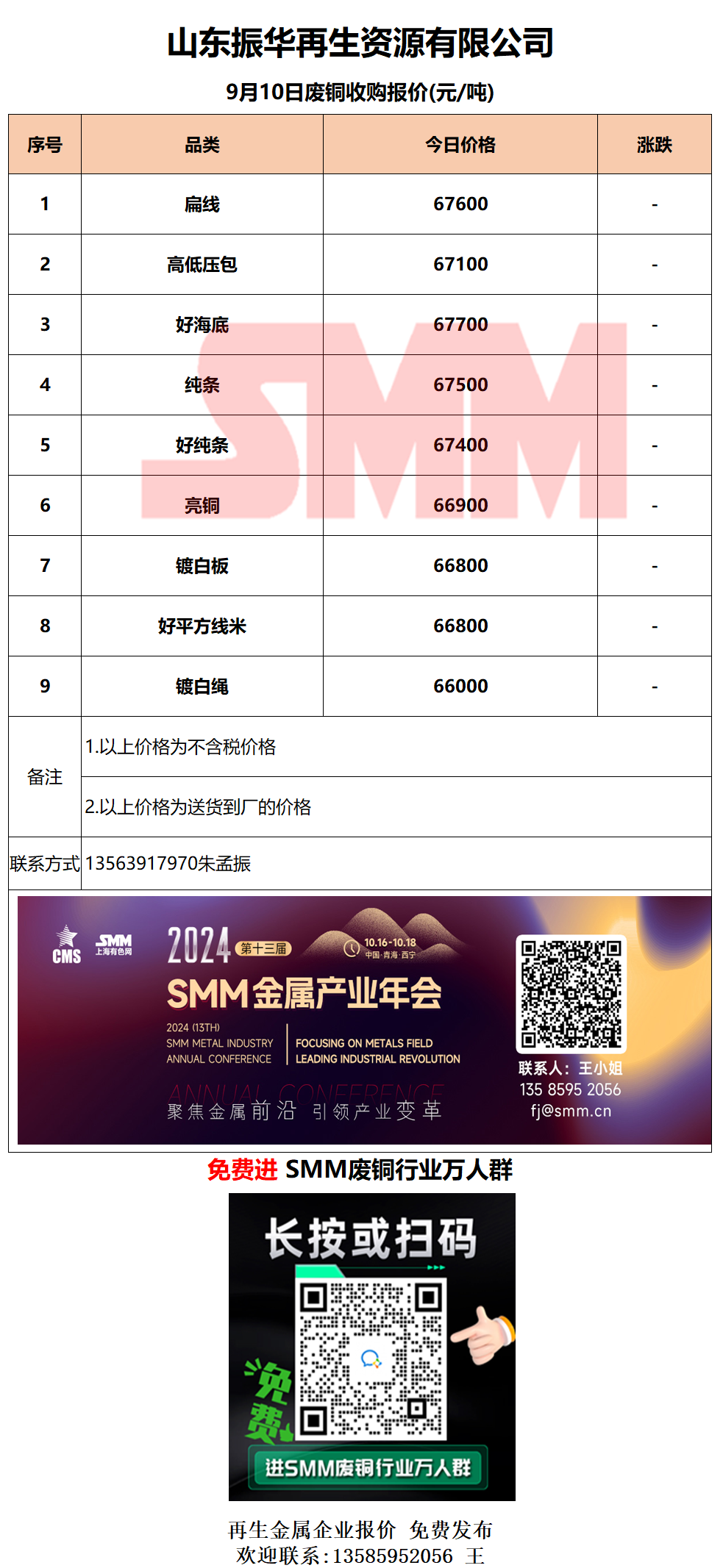 今日山东振华 废铜采购报价已更新,有货的朋友欢迎联系我们!