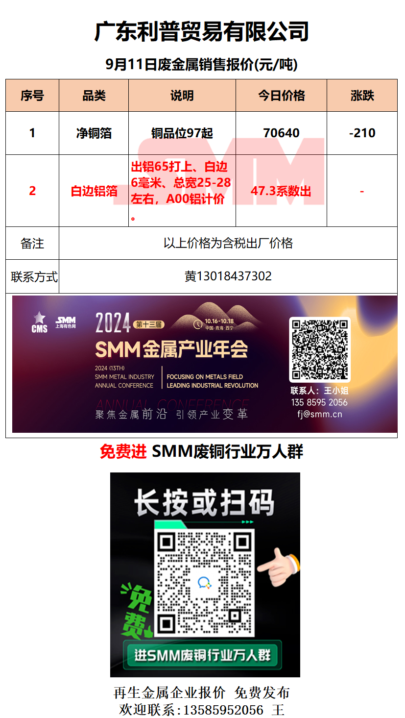 今日广东利普 废铜废铝销售报价已更新,有货的朋友欢迎联系我们!
