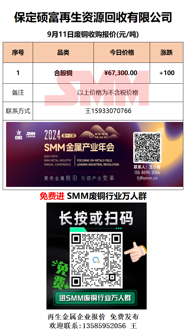 今日保定硕富 废铜采购报价已更新,有货的朋友欢迎联系我们!