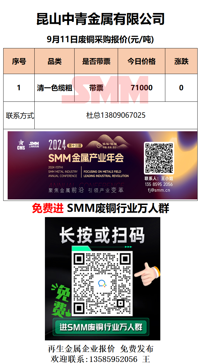 今日昆山中青 废铜采购报价已更新,有货的朋友欢迎联系我们!