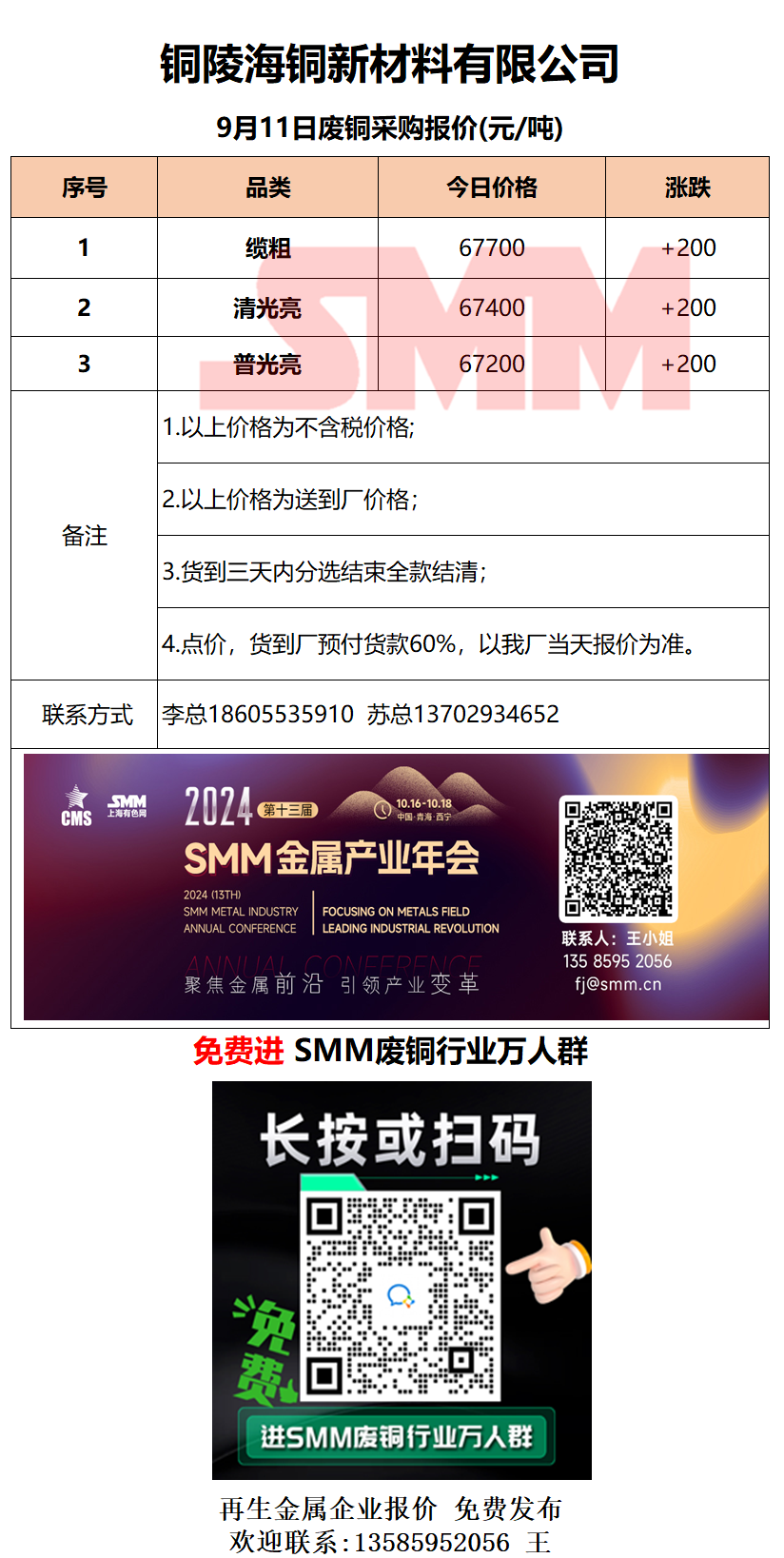 9月11日铜陵海铜 废铜采购报价