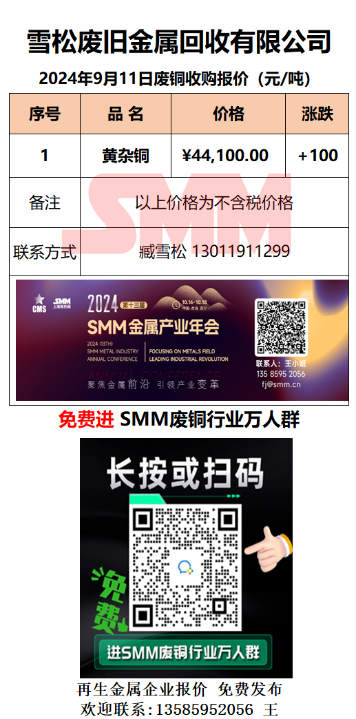 9月11日雪松废旧 废铜采购报价