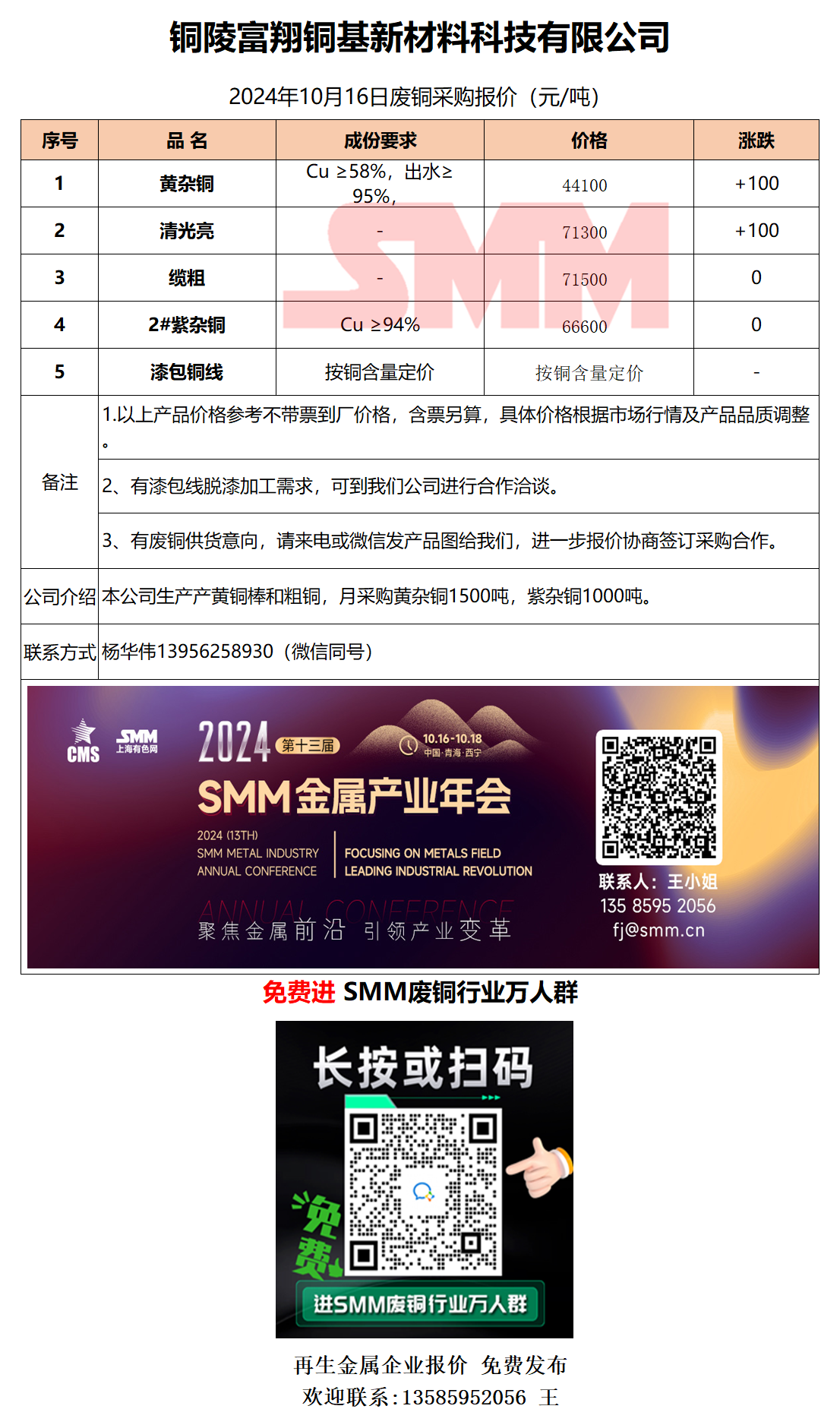 今日铜陵富翔 废铜采购报价已更新,有货的朋友欢迎联系我们!