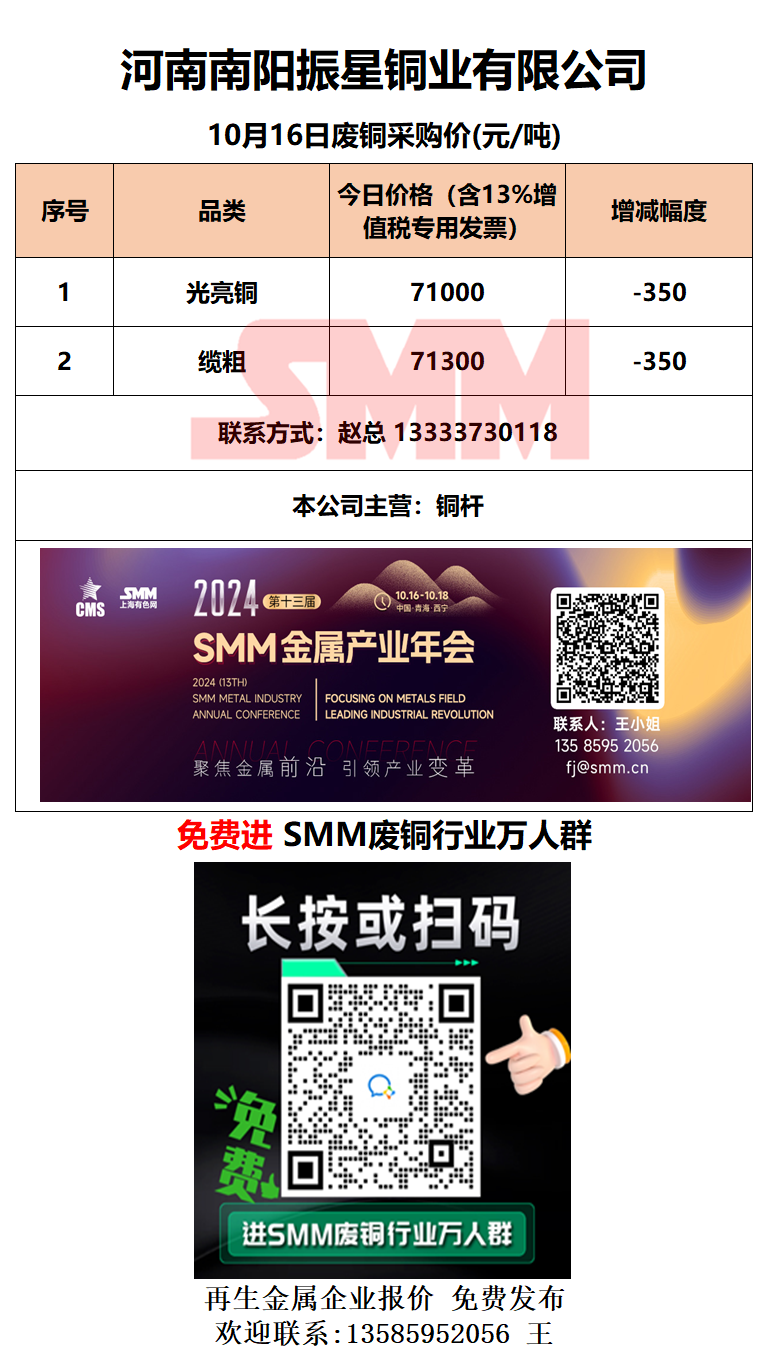 今日南阳振星 废铜采购报价已更新,有货的朋友欢迎联系我们!