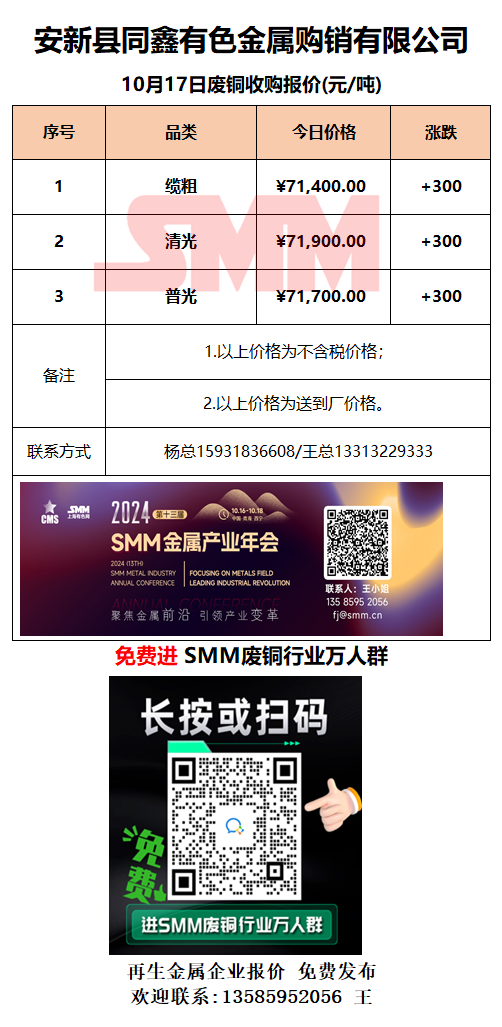 10月17日安新同鑫 废铜采购报价