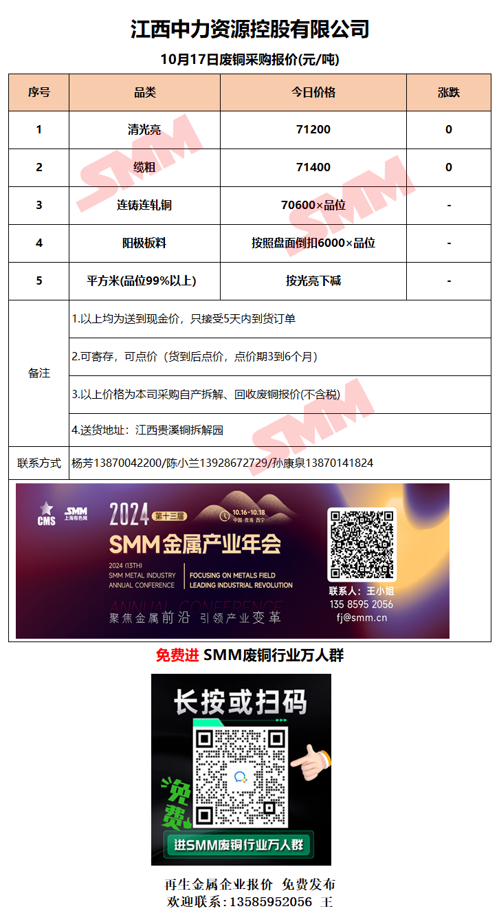 10月17日江西中力 废铜采购报价