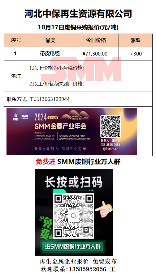 10月17日河北中保 废铜采购报价