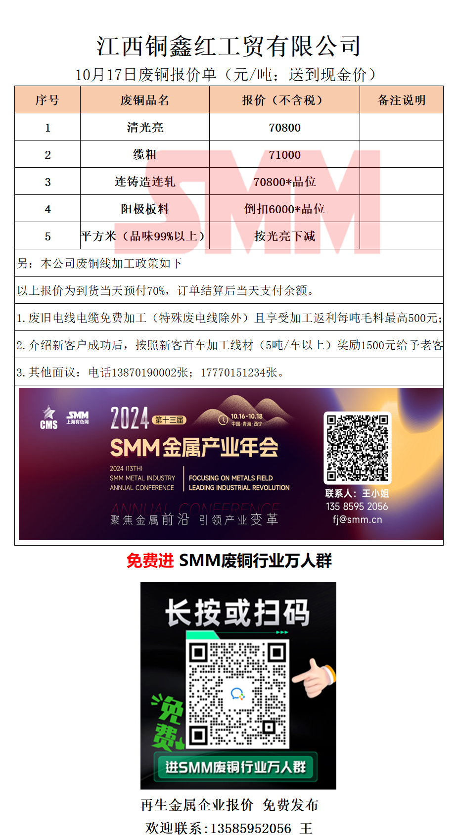 10月17日江西铜鑫红 废铜采购报价