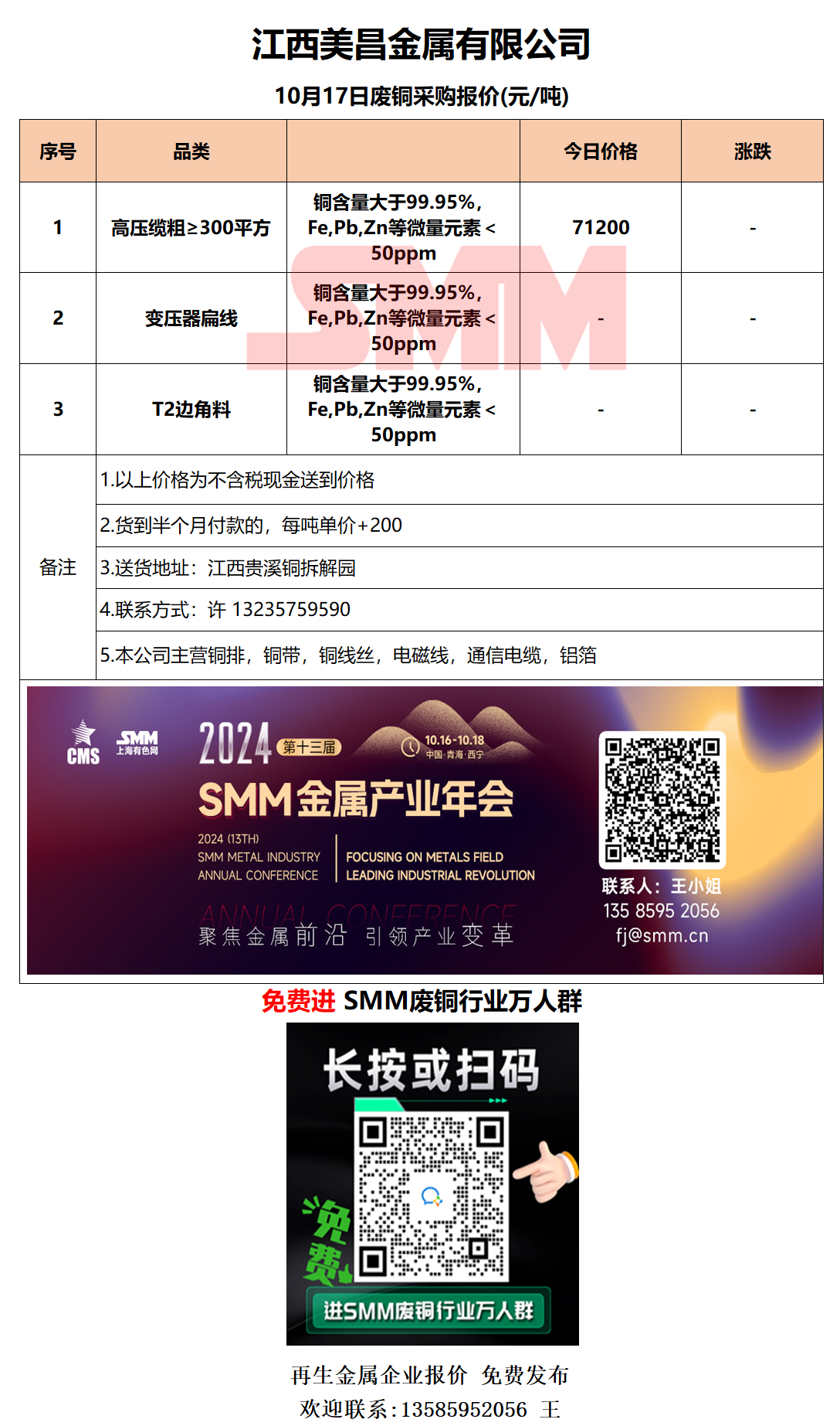 10月17日江西美昌 废铜采购报价