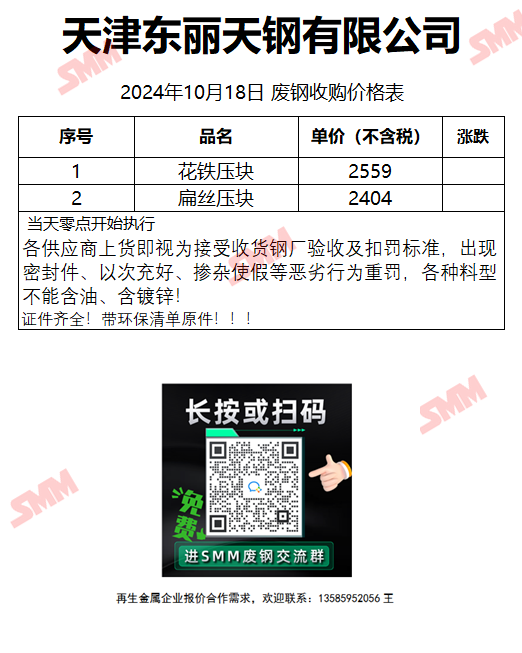 今日天津东丽天钢 废钢收购报价已更新,有货的朋友欢迎联系我们!