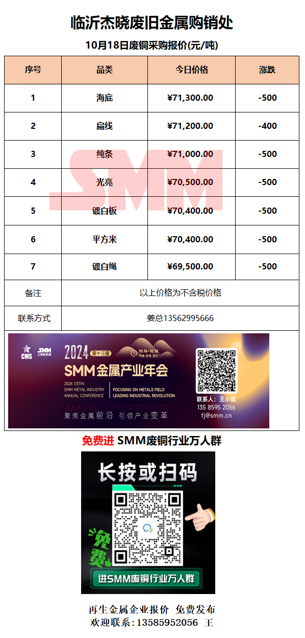 10月18日临沂杰晓 废铜采购报价