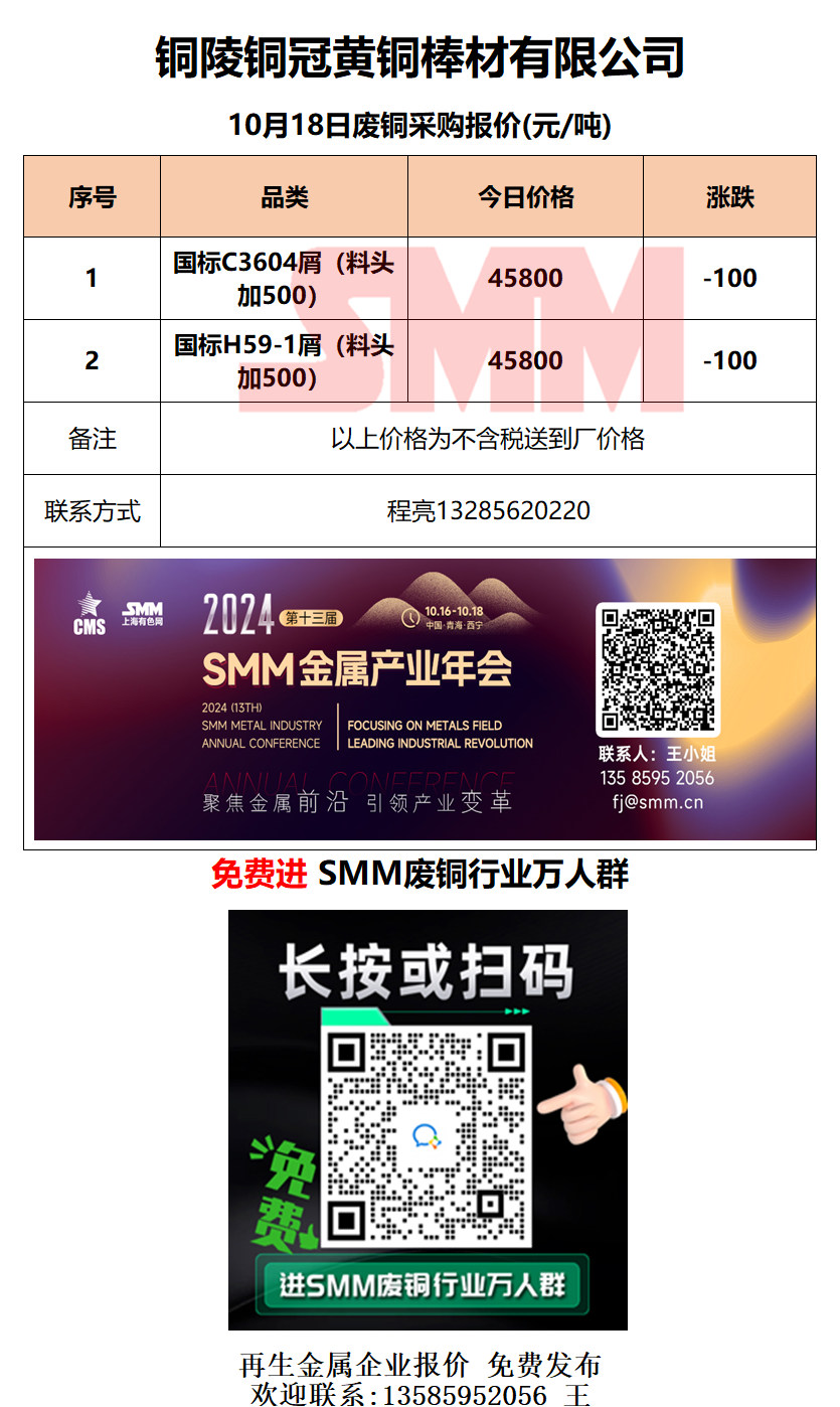 10月18日铜陵铜冠 废铜采购报价