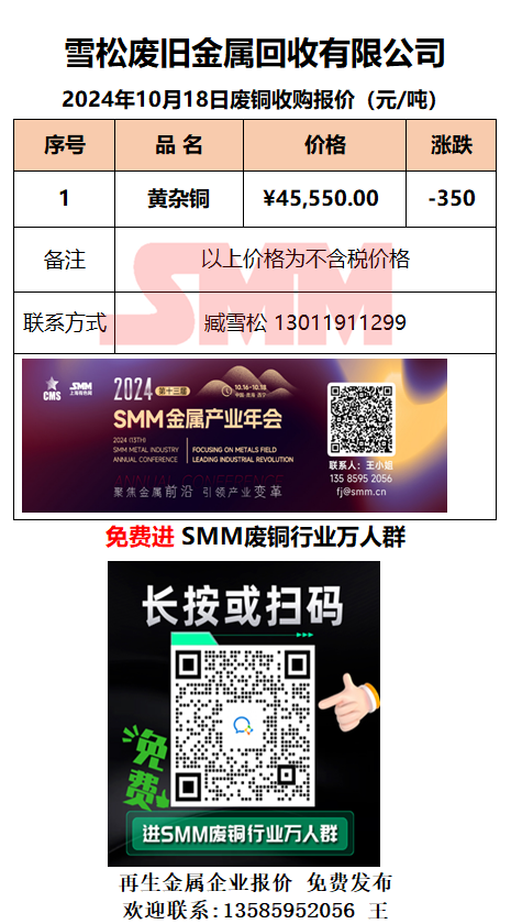 10月18日雪松废旧 废铜采购报价