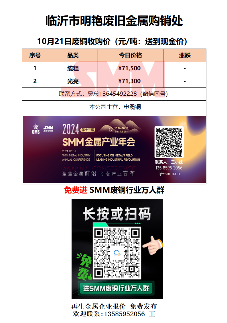 今日临沂明艳废旧金属 废铜采购报价已更新,有货的朋友欢迎联系我们!