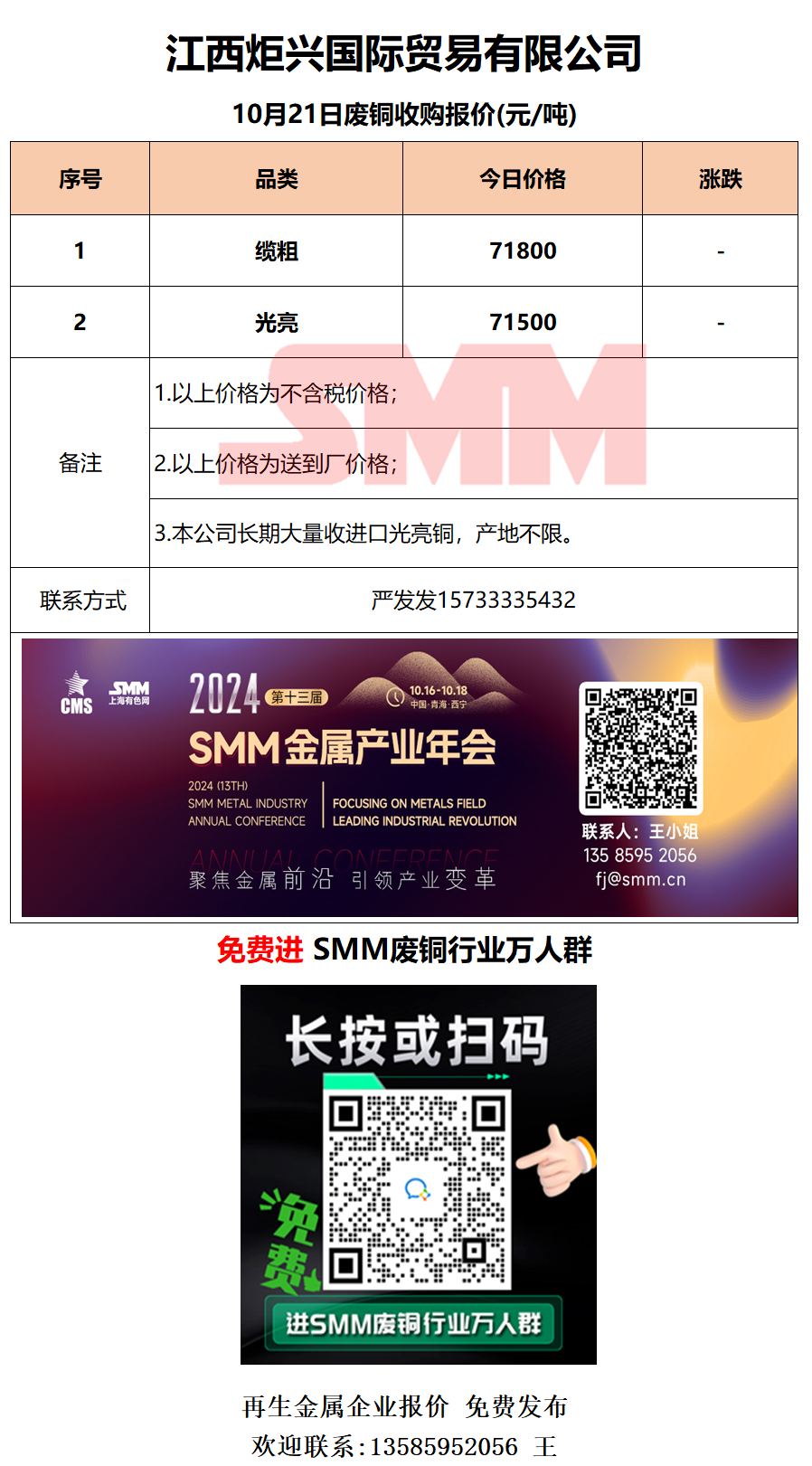 今日江西炬兴 废铜采购报价已更新,有货的朋友欢迎联系我们!