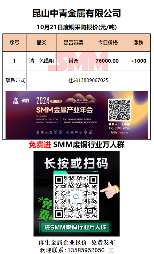 10月21日昆山中青 废铜采购报价