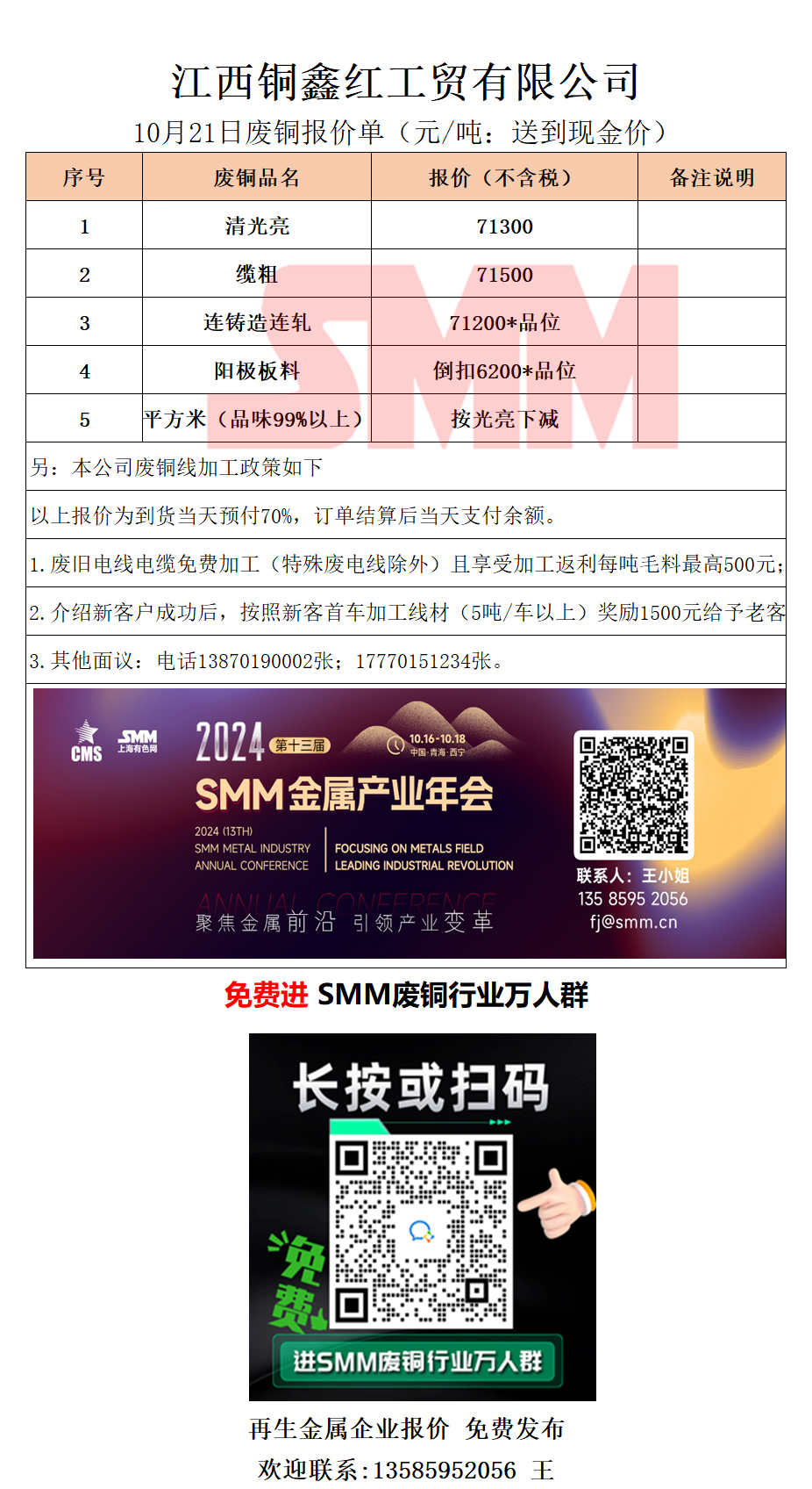 10月21日江西铜鑫红 废铜采购报价