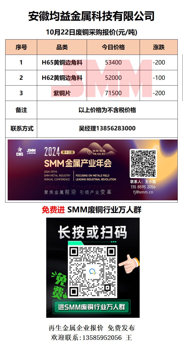 10月22日安徽均益 废铜采购报价