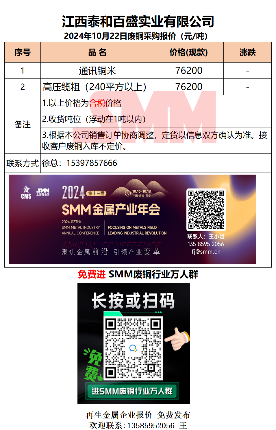 今日江西泰和 废铜采购报价已更新,有货的朋友欢迎联系我们!
