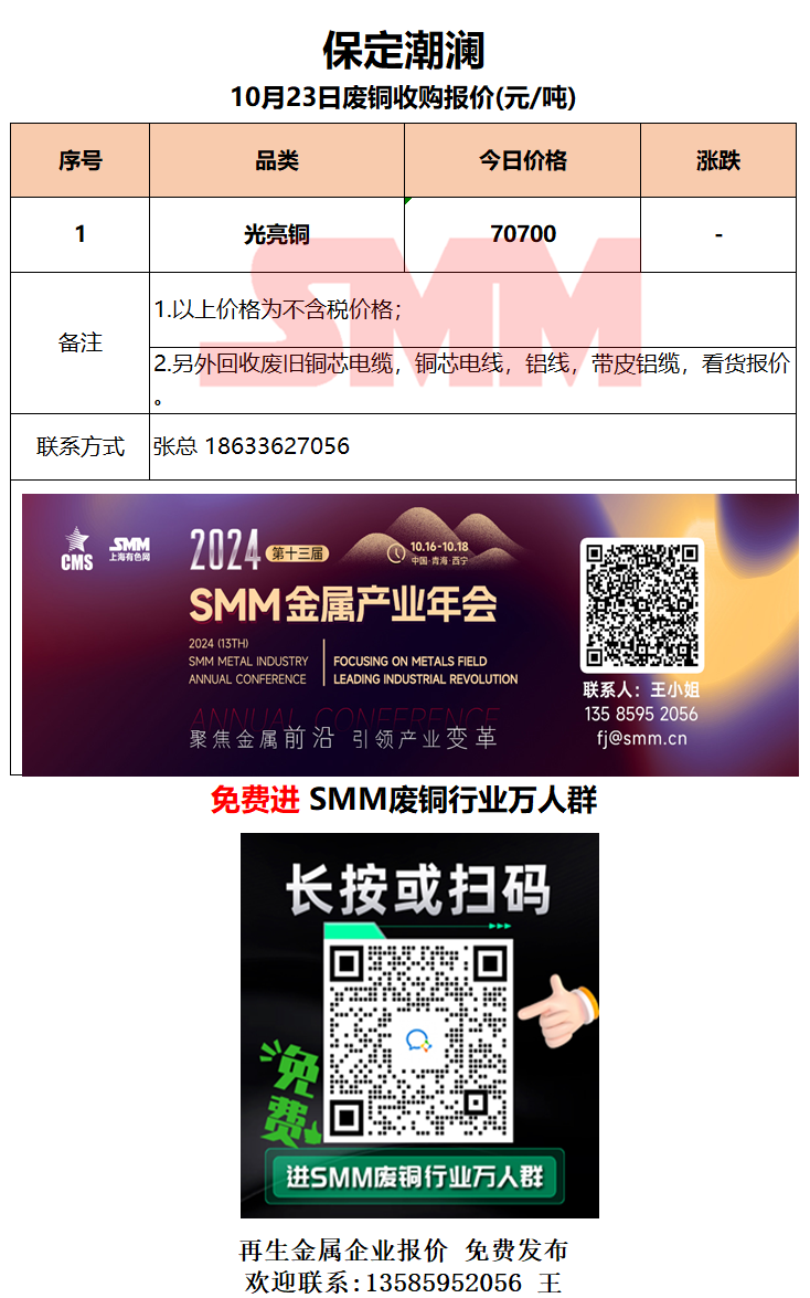 10月23日保定潮澜 废铜采购报价