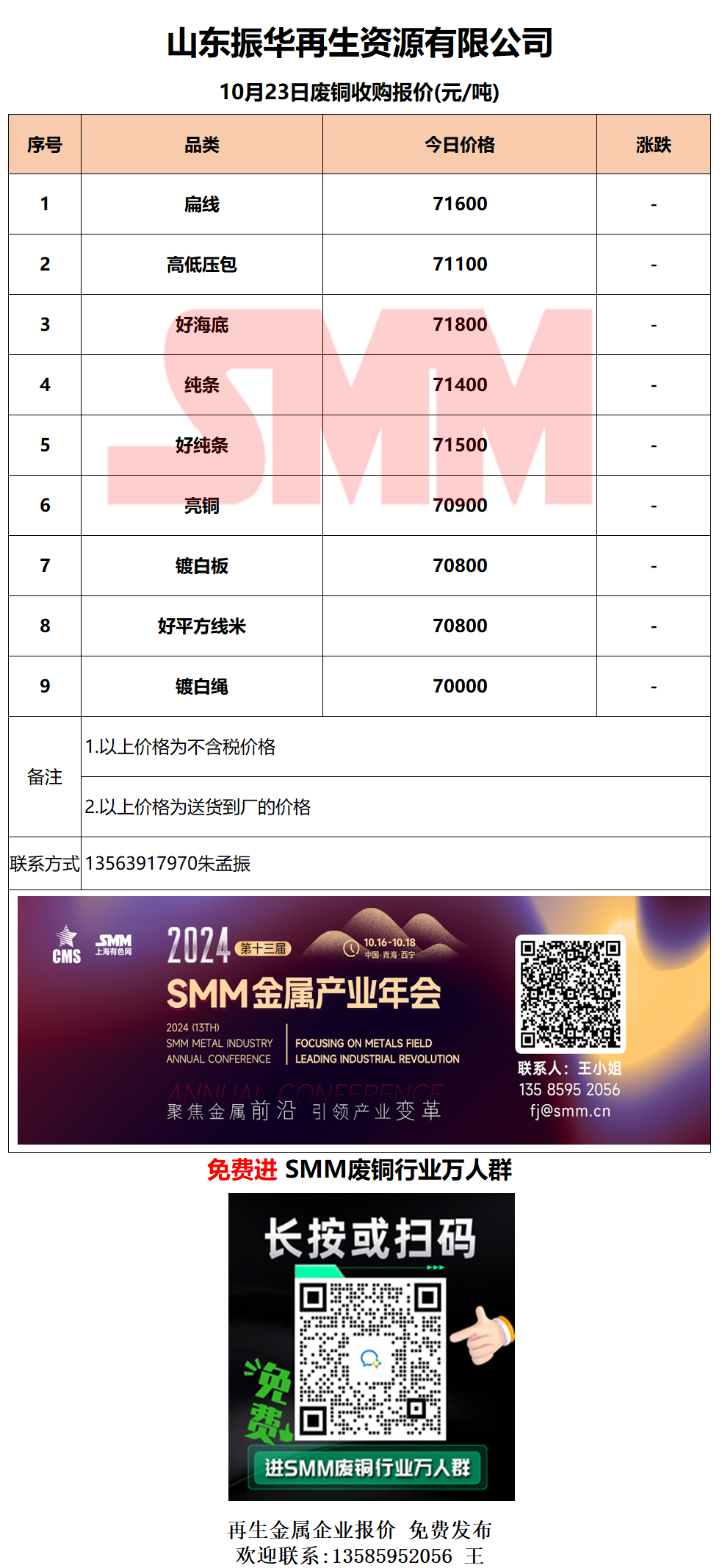 今日山东振华 废铜采购报价已更新,有货的朋友欢迎联系我们!