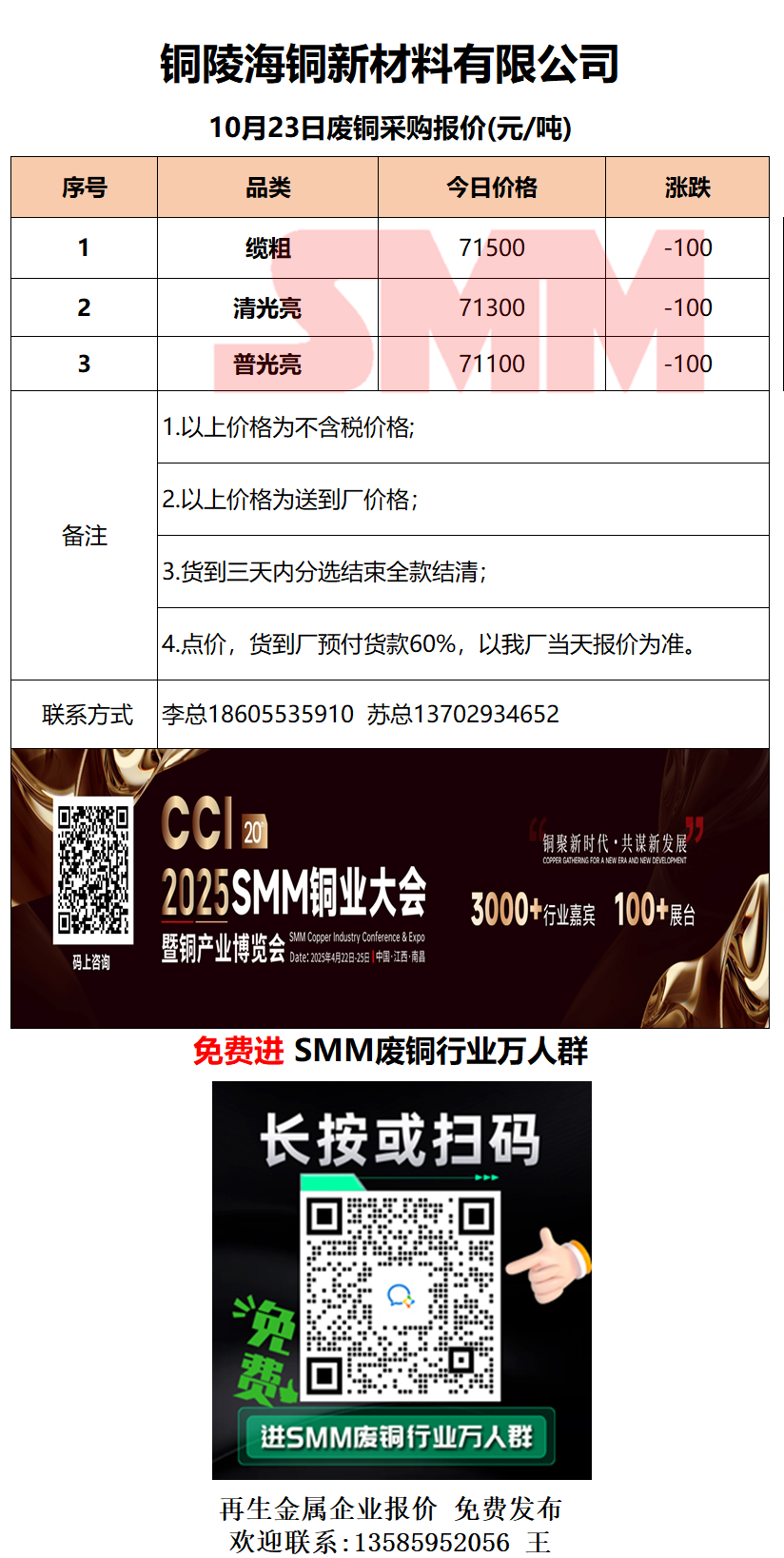 10月23日铜陵海铜 废铜采购报价