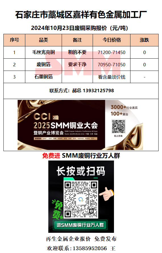 今日嘉祥有色金属 废铜采购报价已更新,有货的朋友欢迎联系我们!
