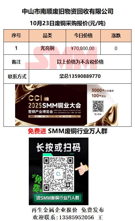 10月23日中山南顺 废铜采购报价