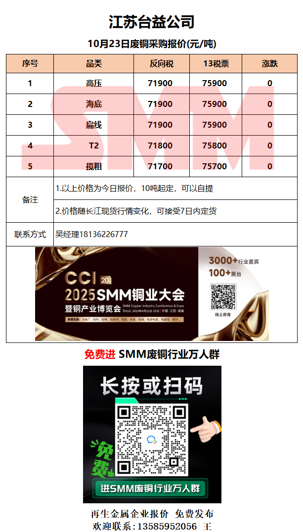 今日江苏台益 废铜采购报价已更新,有货的朋友欢迎联系我们!