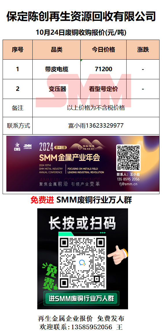 10月24日保定陈创 废铜采购报价