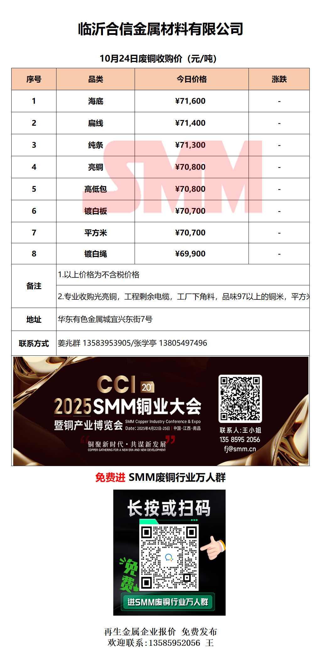 10月24日临沂合信金属 废铜采购报价