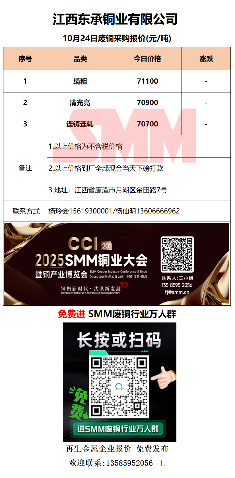 今日江西东承 废铜采购报价已更新,有货的朋友欢迎联系我们!