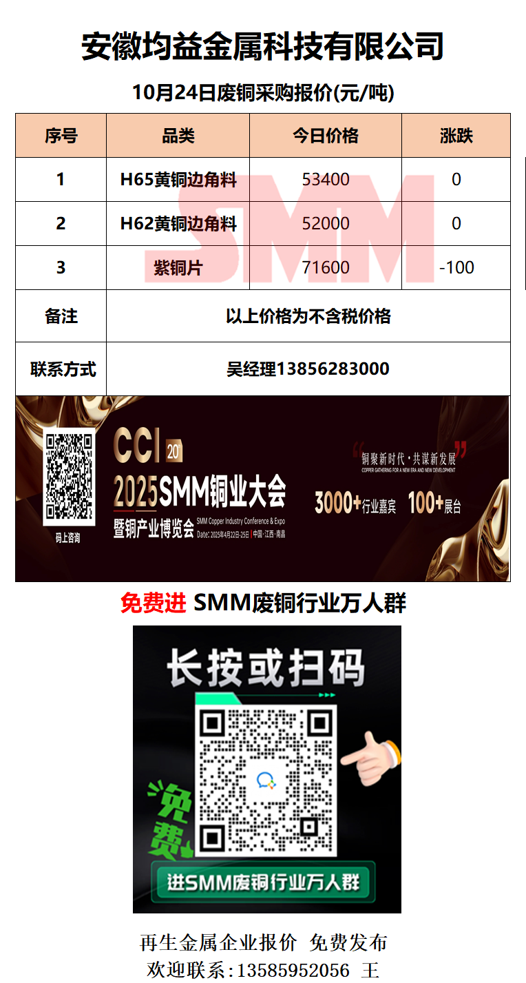 今日安徽均益 废铜采购报价已更新,有货的朋友欢迎联系我们!