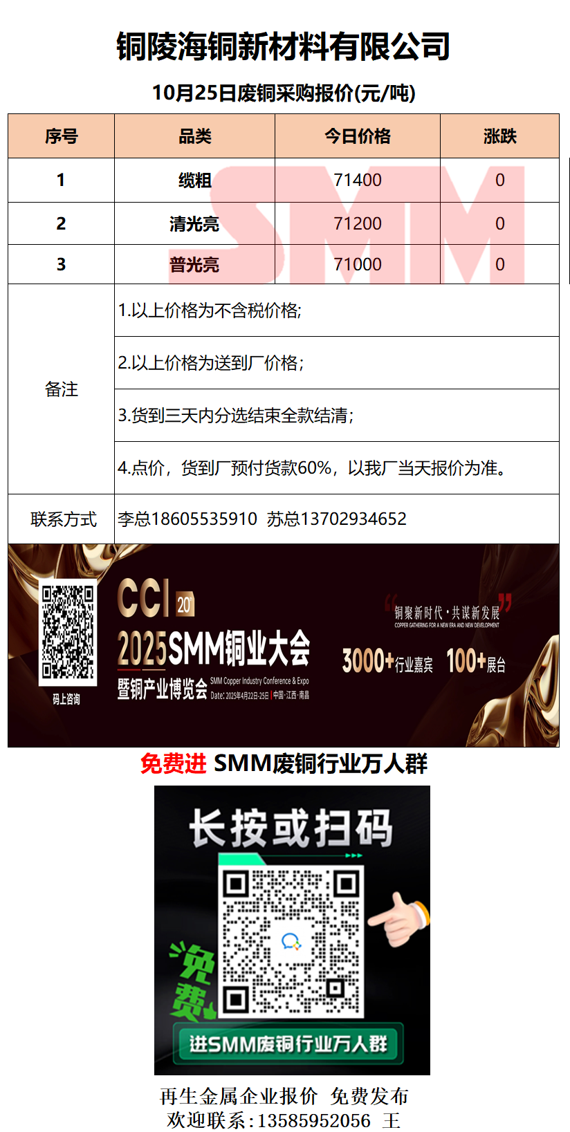 今日铜陵海铜 废铜采购报价已更新,有货的朋友欢迎联系我们!
