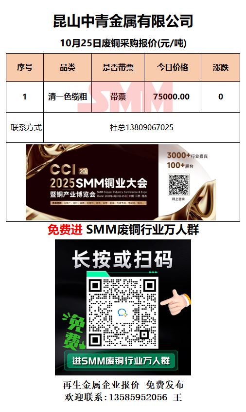 10月25日昆山中青 废铜采购报价