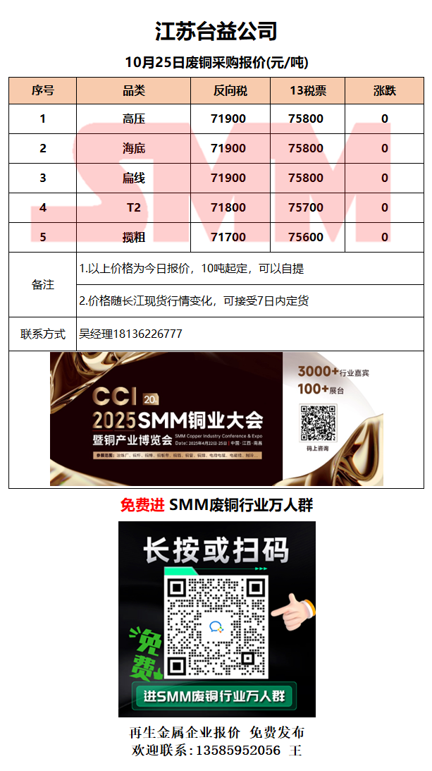 今日江苏台益 废铜采购报价已更新,有货的朋友欢迎联系我们!