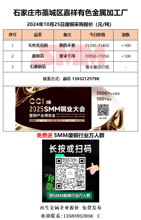 今日嘉祥有色金属 废铜采购报价已更新,有货的朋友欢迎联系我们!