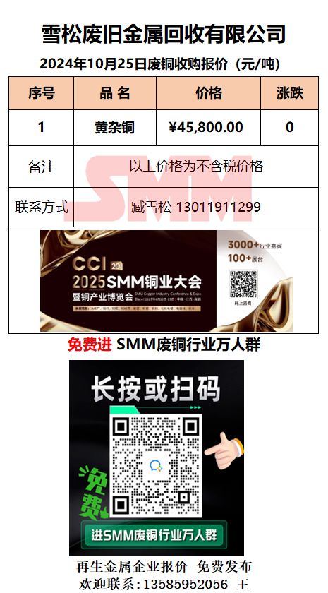 10月25日雪松废旧 废铜采购报价