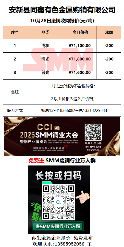 今日安新同鑫 废铜采购报价已更新,有货的朋友欢迎联系我们!
