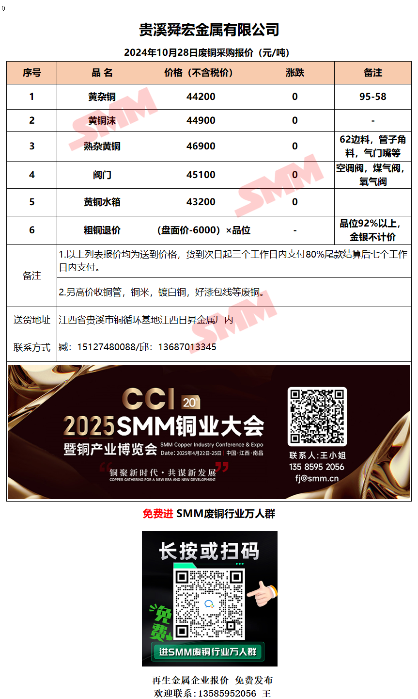 今日贵溪舜宏 废铜采购报价已更新,有货的朋友欢迎联系我们!