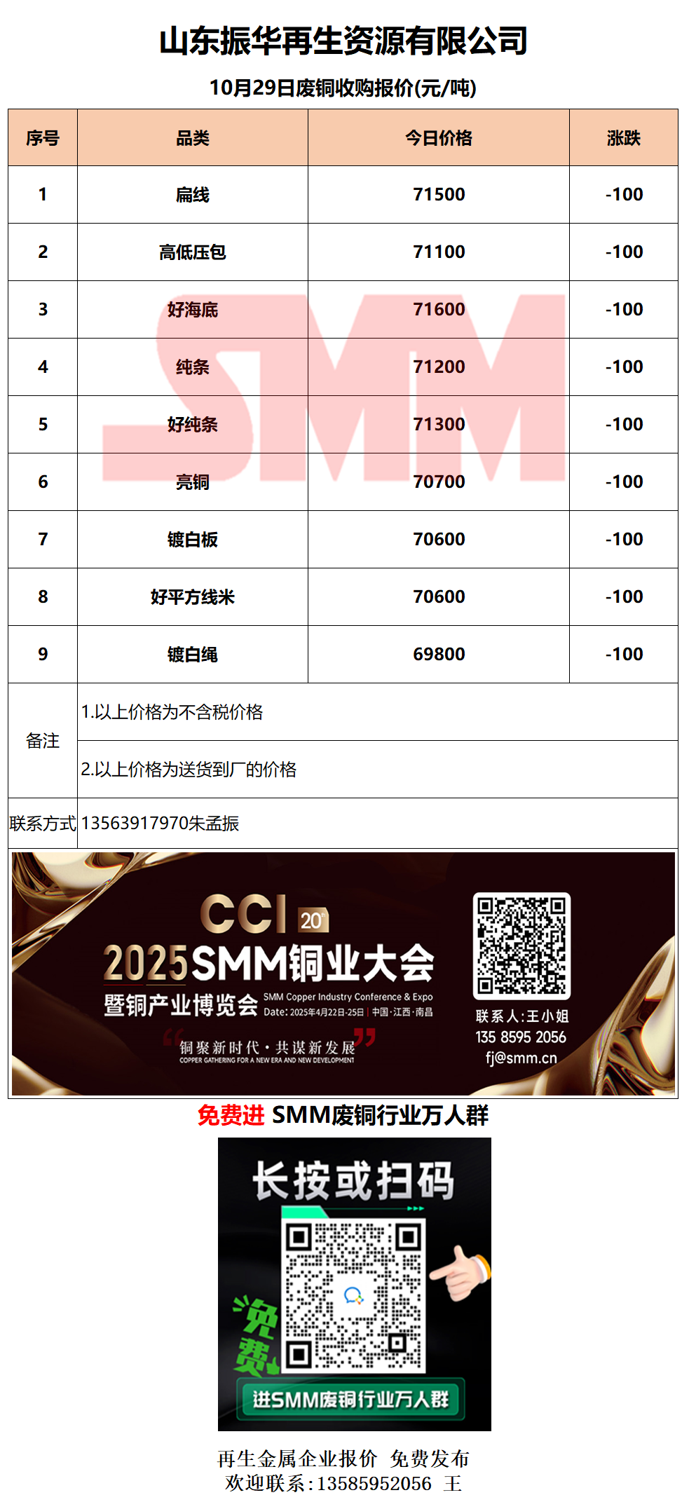 10月29日山东振华 废铜采购报价