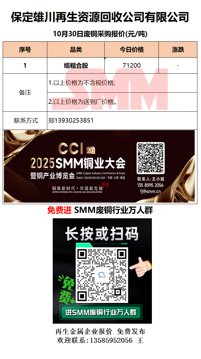 今日保定雄川 废铜采购报价已更新,有货的朋友欢迎联系我们!